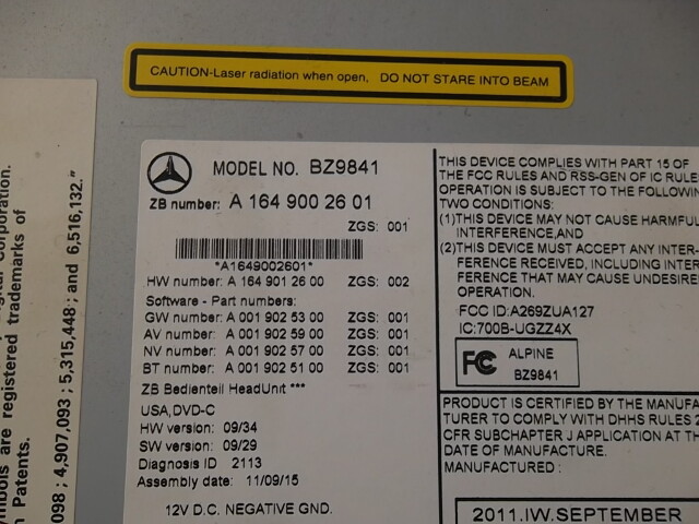 2009-2012 Mercedes Benz GL450 Radio Display Screen 164-900-26-01