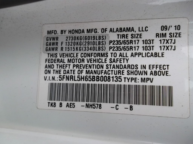 2011-2013 Honda Odyssey Fender Passenger White NH578