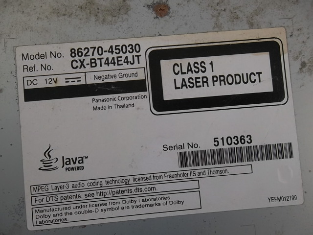 2014-2018 Toyota Sienna Blu-Ray Entertainment DVD Player 86270-45030