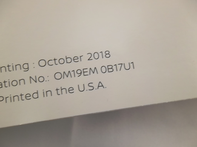 2019 Nissan Sentra Owner's Manual OM19EM-OB17U1